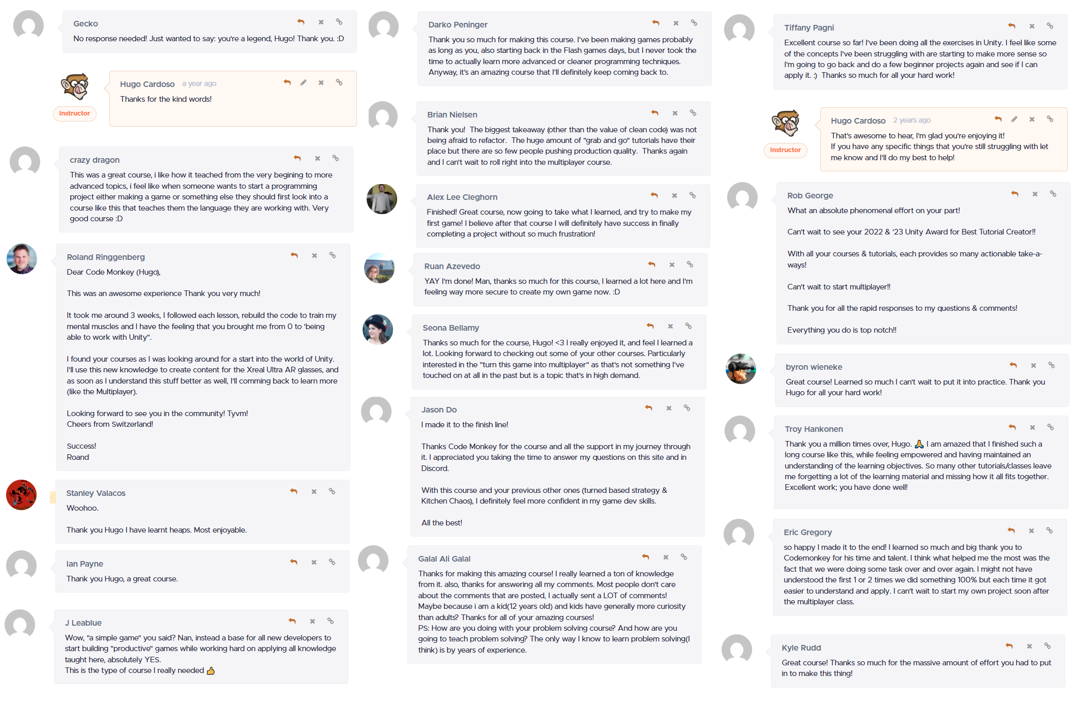 Every lecture has a comments section where you can ask any question, once you do there is an AI that will answer you within 2 minutes, since the AI was trained on the contents of the course it is very knowledgeable, but then I myself will still manually answer your question within the next 24 hours. So yup ask any questions you have and I'll do my best to help you!