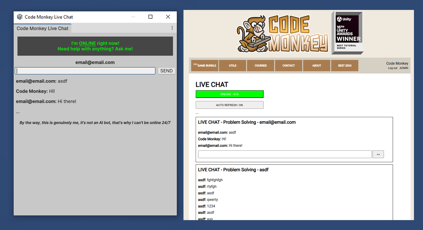 I have built a Live Chat window from scratch, it is available inside the Companion Project. It shows when I'm online and then I can see your messages on my back-end and help you with anything you need help with.